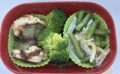 昼(白ご飯0.5g鳥ハンバーグ10g、ブロッコリー0.3g、胡麻和え1g)